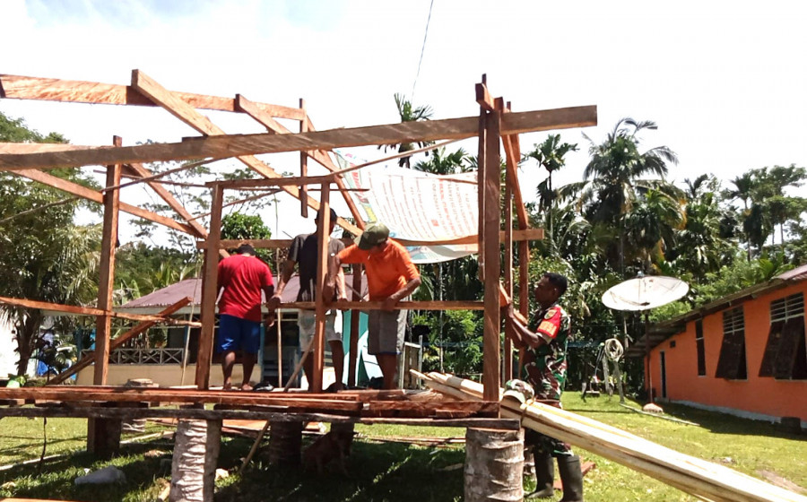 XNEWS.ID – Menjelang perayaan Natal, Babinsa Koramil 1708-03/Biak Barat, Serka Mikha Rumbewas bersama warga Kampung Mamoribo melaksanakan gotong- royong pembuatan pondok Natal milik Paulinus Mirino di Distrik Biak Barat, Kabupaten Biak Numfor, Papua, Selasa (23/12/2025).